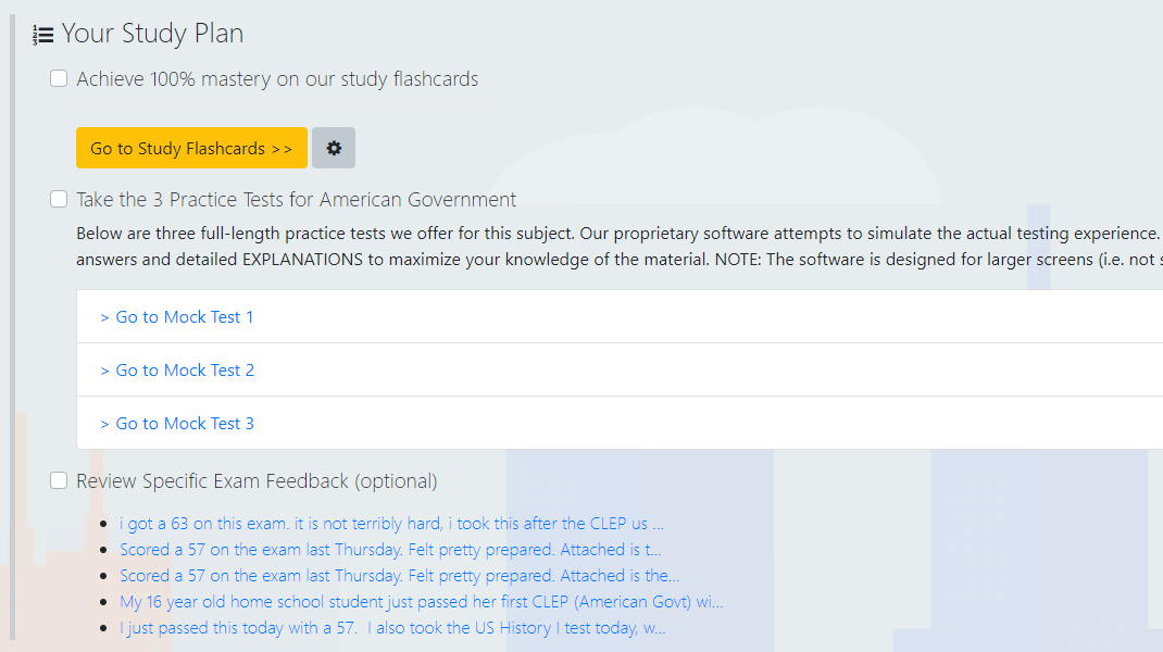 Everything the American Government CLEP tests — organized, simplified, and optimized for passing. We focus only on what the exam actually tests, so you don't waste time on what it doesn't.